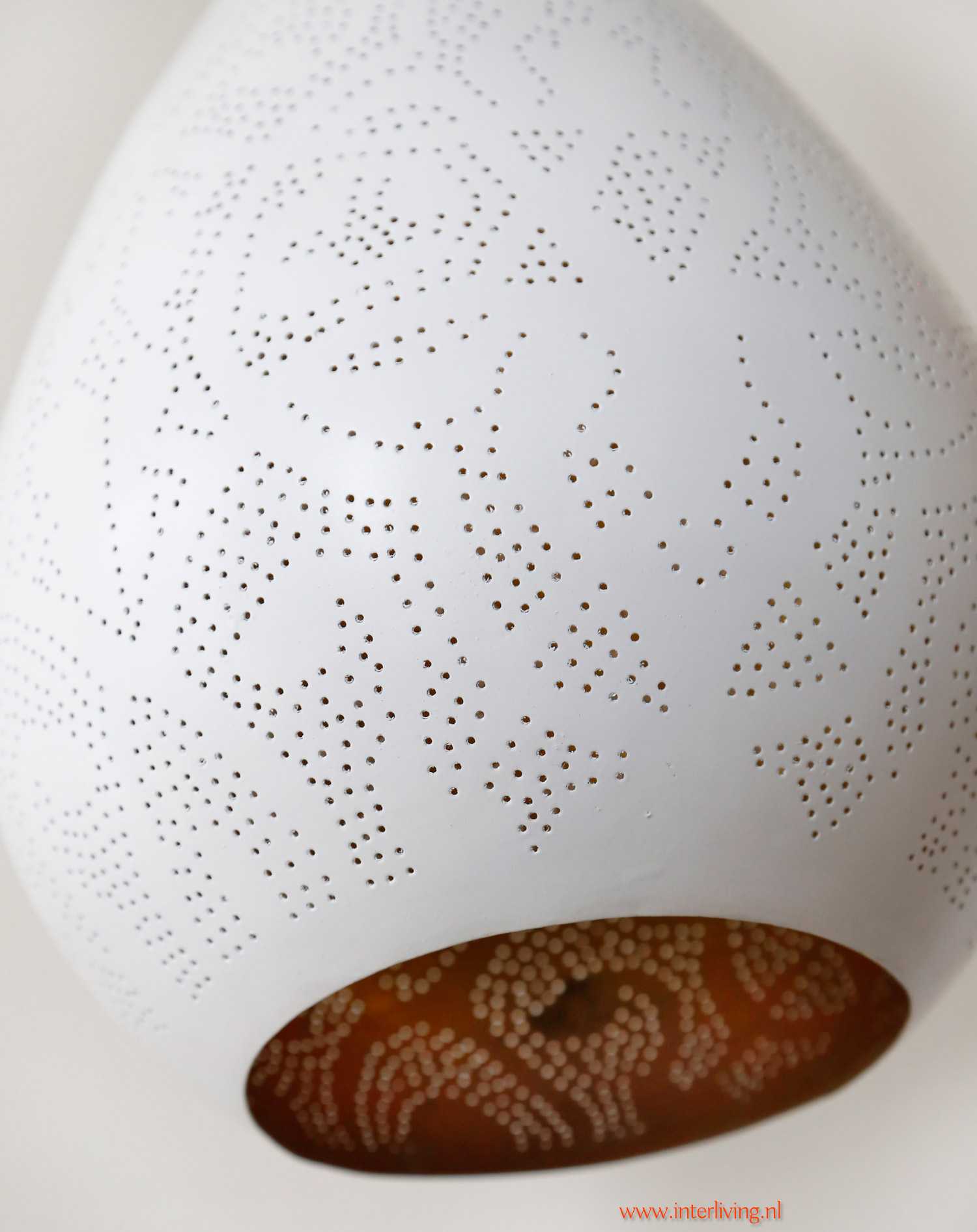 hanglamp met ronde opening in druppel model wit oosterse gaatjespatronen