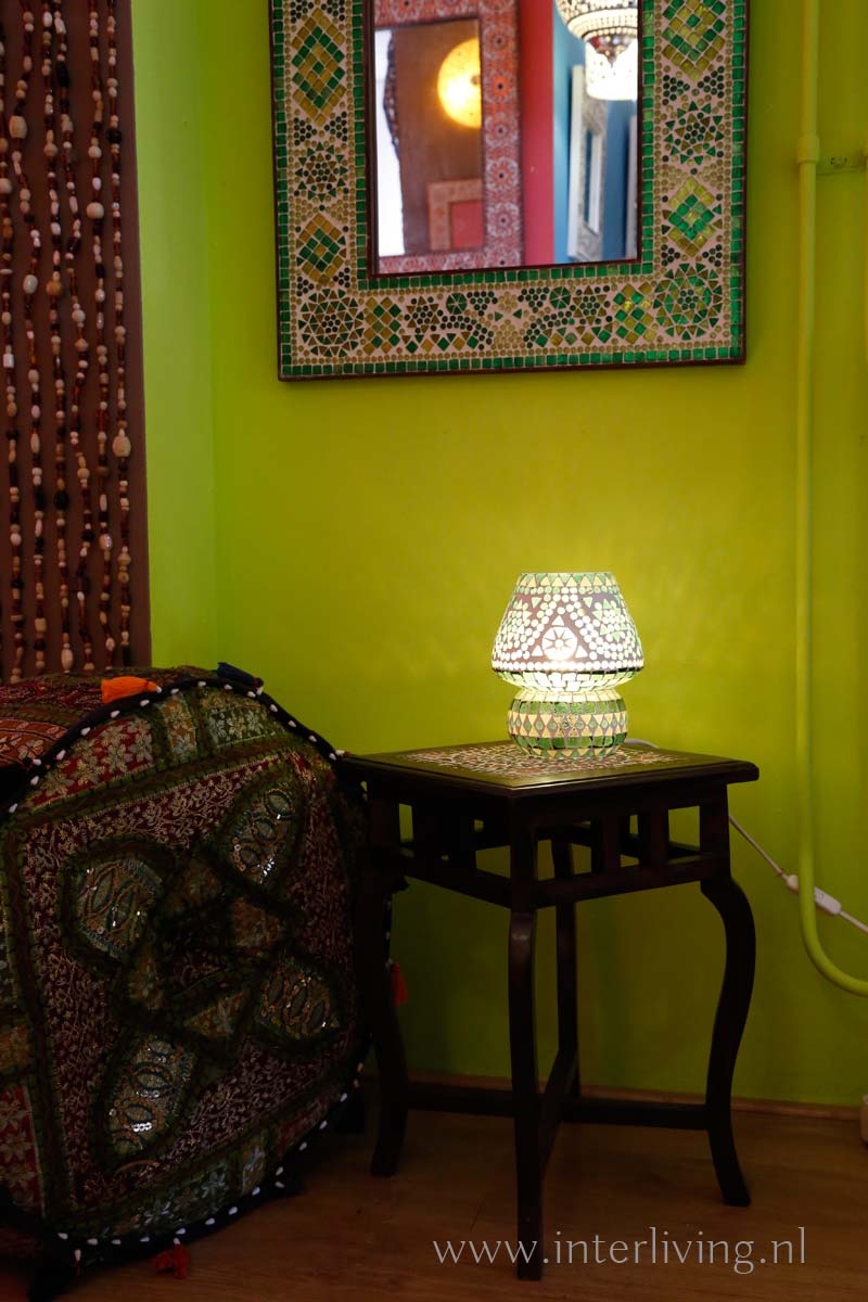 Herfst sfeerverlichting: Mooie tafellamp met Indiaas glasmozaiek
