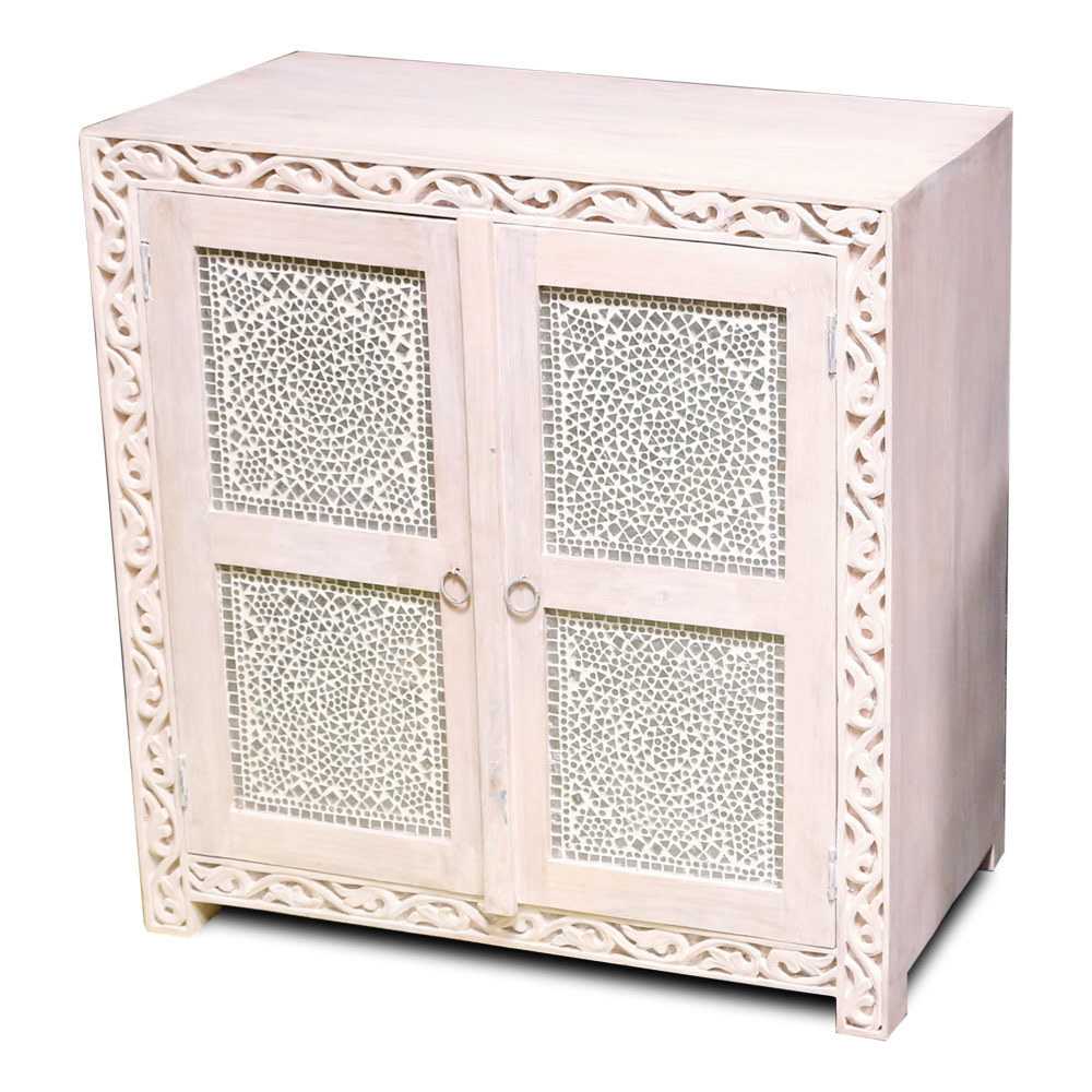 Stijlvol wit met bewerkt vintage look, een leuke kleine opbergkast geschikt voor ieder interieur.