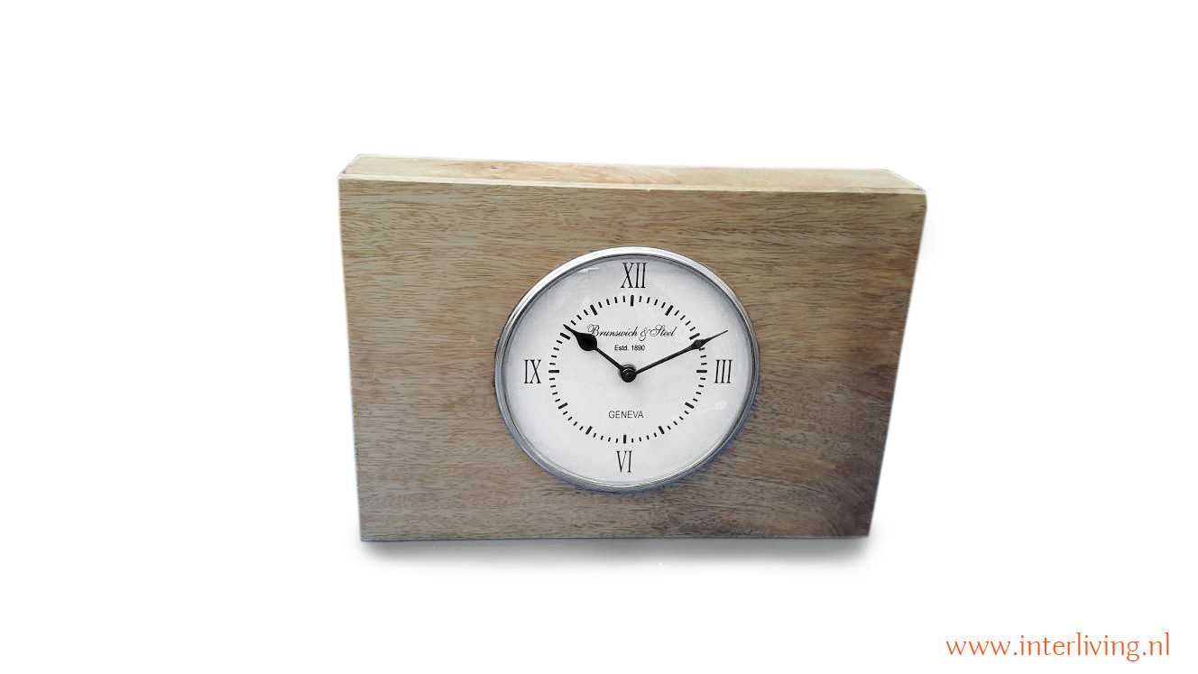 – kleur: naturel onbewerkt hout met witte retro stationsklok look wijzerplaat