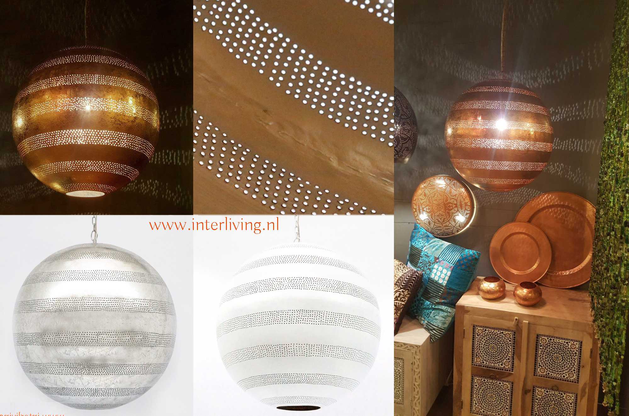 Bekijk de metalen XXL bol hanglampen met decoratieve gaatjes patronen in onze webshop