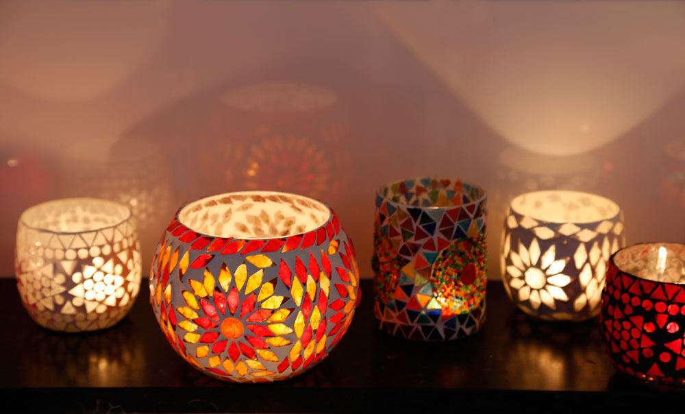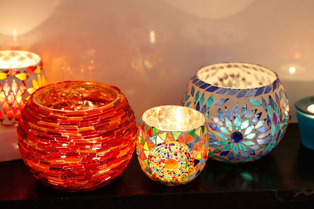 Theelichtjes, waxinehouders, sfeerlichtjes: het is er altijd het seizoen voor! Te gebruiken als kerstverlichting voor de winter in huis, op balkon, terras maar ook in de tuin als windlicht voor de zomer! U krijgt in deze fotogalerie een goed beeld van de verschillende kleuren, vormen en glasmozaiek ontwerpen. Allemaal te koop in onze webshop! Gebruik de buttons om de theelichtjes te filteren op kleur , stijl en vorm.