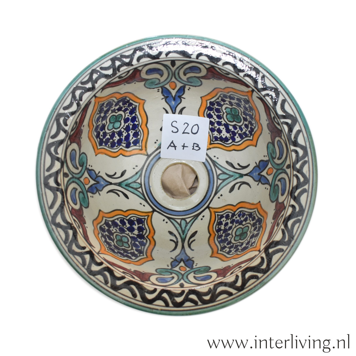 Ronde opbouw wasbakken / waskommen van Marokkaans keramiek